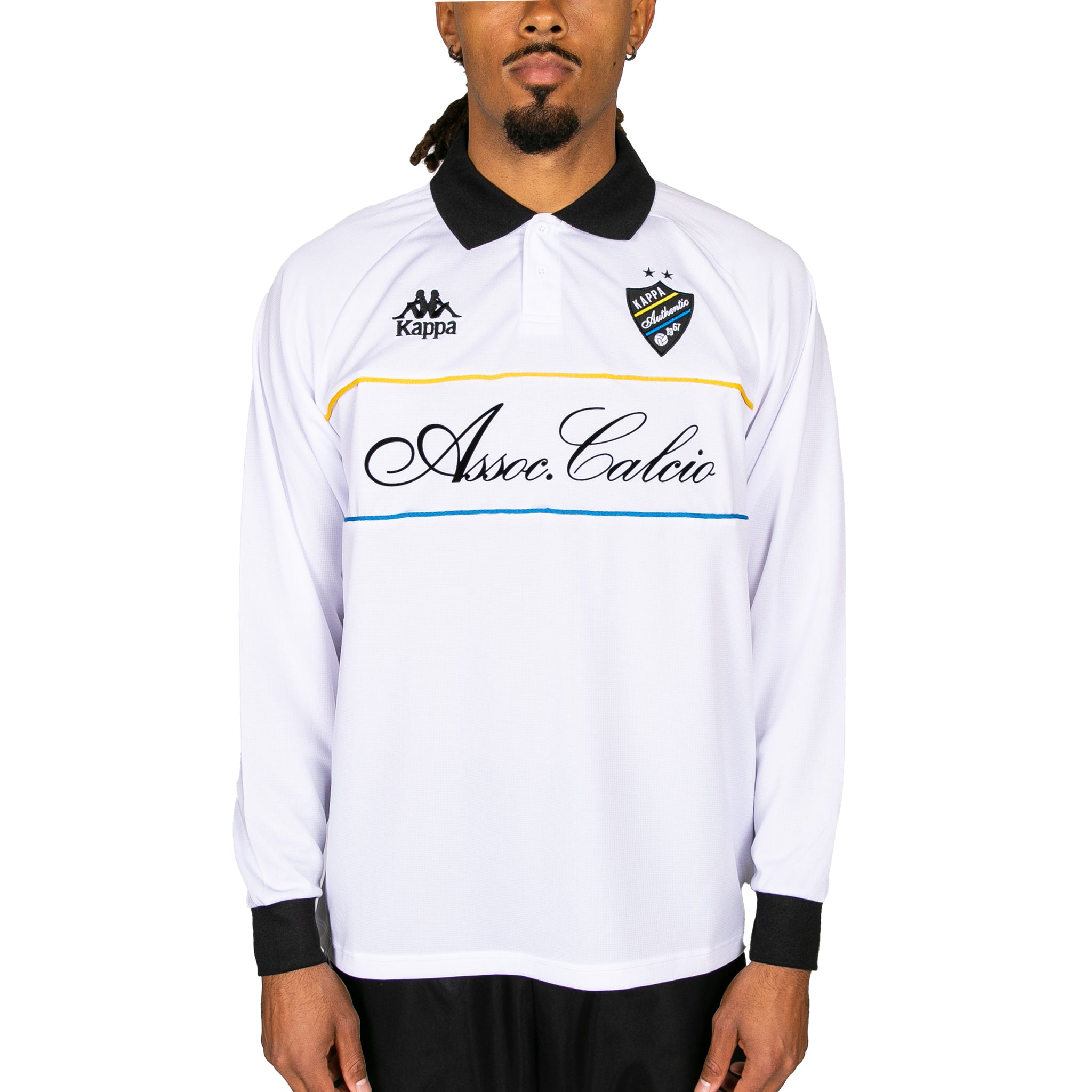 - Crest and Kappa Authentic logo on chest.